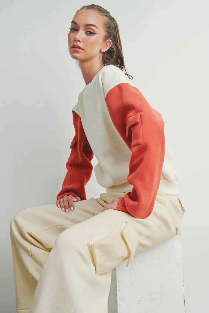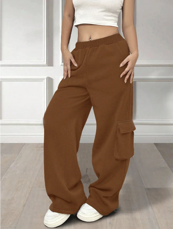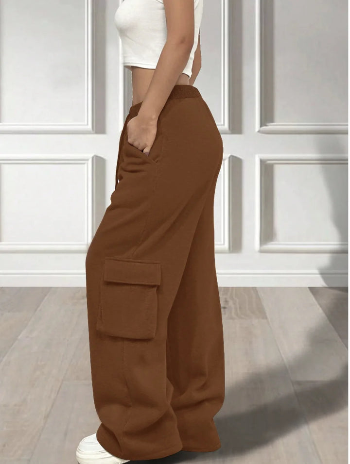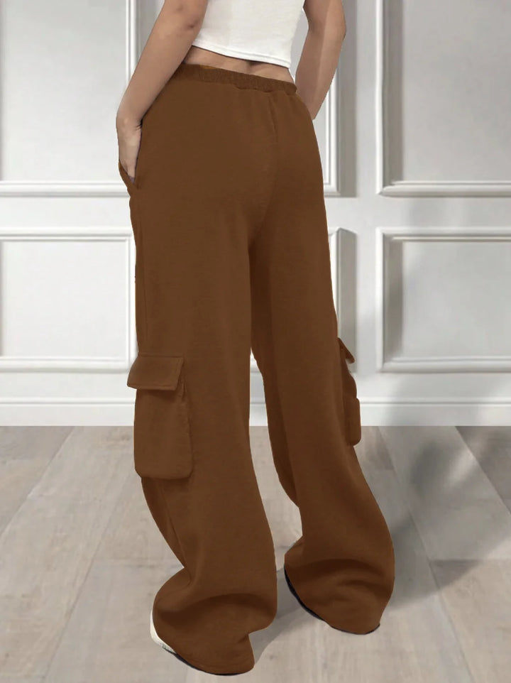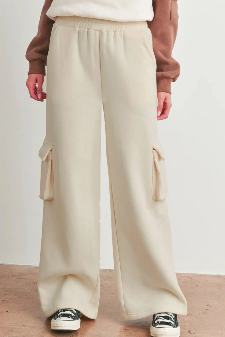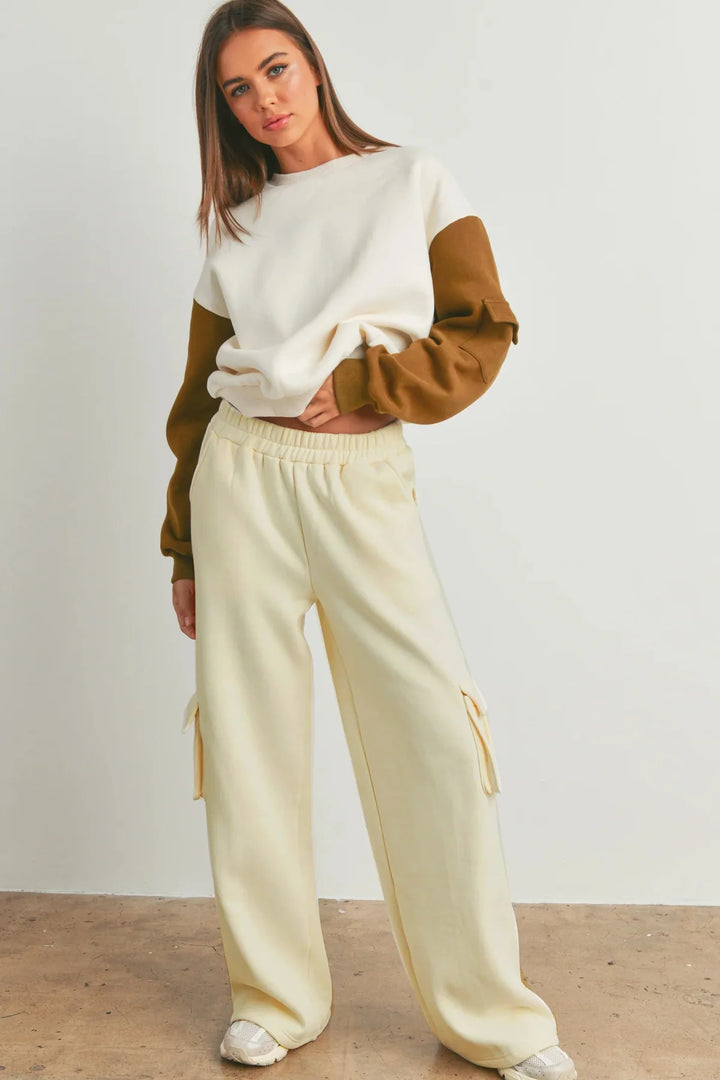 COMBO BROWN & BEIGE WIDE LEG CARGO PANTS