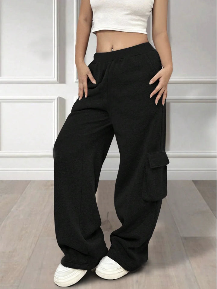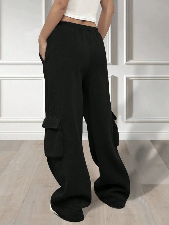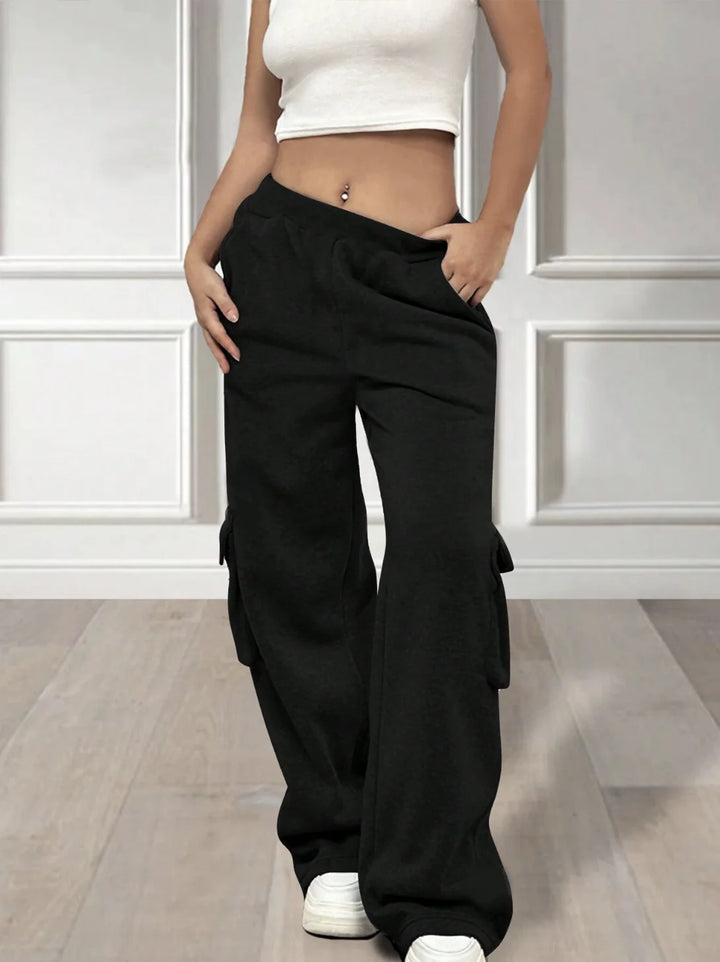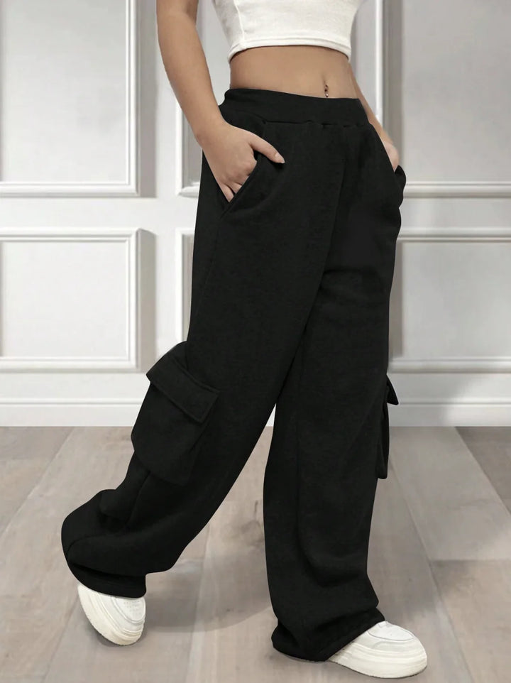 COMBO BLACK & BEIGE WIDE LEG CARGO PANTS